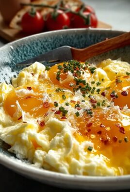 - Cuisson lente et douce: Versez le mélange d’ufs dans la poêle chaude. Laissez cuire pendant quelques secondes, puis commencez à remuer doucement avec une spatule en silicone. Poussez les ufs cuits vers le centre de la poêle, permettant aux ufs non cuits de couler vers le bord. Continuez à remuer doucement jusqu’à ce que les ufs soient presque cuits, mais encore légèrement humides. N’oubliez pas qu’ils continueront à cuire légèrement après avoir été retirés du feu.