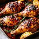 En résumé, les cuisses de poulet laquées miel harissa sont un plat incontournable qui allie douceur et piquant, offrant une explosion de saveurs à chaque bouchée. Ce mélange unique de miel et de harissa crée une marinade irrésistible qui caramélise à la perfection, rendant le poulet tendre et juteux. Que vous les serviez avec un accompagnement de légumes rôtis, de riz parfumé ou même d’une salade fraîche, ces cuisses de poulet s’adaptent à toutes les occasions, que ce soit un dîner en famille ou un barbecue entre amis. N’hésitez pas à expérimenter avec des variations, comme l’ajout de zestes d’agrumes pour une touche de fraîcheur ou en remplaçant le miel par du sirop d’érable pour une saveur différente. Vous pouvez également ajuster le niveau de piquant en modifiant la quantité de harissa selon vos préférences. Nous vous encourageons vivement à essayer cette recette de cuisses de poulet laquées miel harissa et à partager votre expérience avec nous. Que ce soit sur les réseaux sociaux ou dans les commentaires, vos retours sont précieux et peuvent inspirer d’autres amateurs de cuisine. Alors, enfilez votre tablier, préparez ces délicieuses cuisses de poulet et régalez-vous ! Print