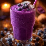 Un smoothie onctueux et rafraîchissant à base de myrtilles et de noix de coco, idéal pour un petit-déjeuner nutritif ou une collation saine.